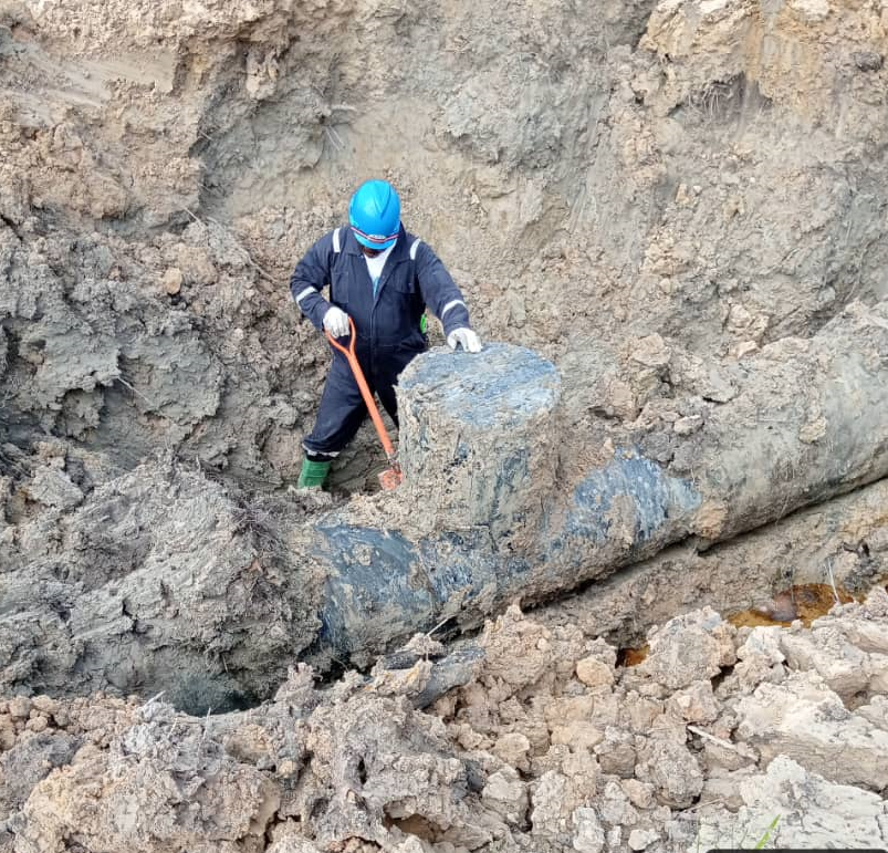 REPAIR BY CONSTRUCTION AND INSTALLATION OF COFFERDAM, BOND WALL CREATION, COLD CUTTING OF DEFECT PIPE, WELDING AND COATING OF NEW PIPE, NON DESTROCTIVE TEST ON WELDING JOINTS EXTRACTION OF COFFERDAM FRAME AND BACKFILLING